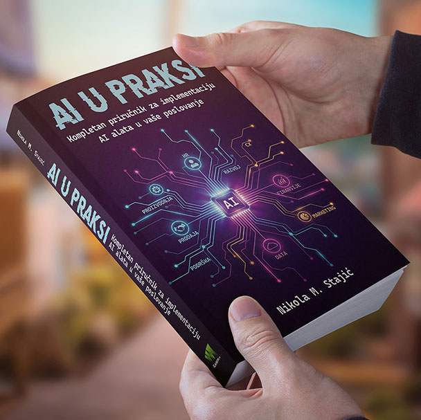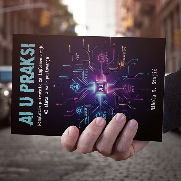 „Nikolina knjiga Al u praksi: Kompletan priručnik za implementaciju AI alata u vaše poslovanje je tačno ono što većini firmi treba u ovom trenutku. Nije još jedna ’AI je budućnost’ brošura, nego operativni vodič koji vas uvodi iz faze igranja sa alatima u fazu stvarne primene... priručnik koji vredi držati na stolu, ne u fioci.”